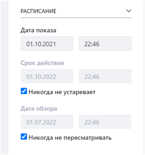 Также можно изменить дату показа новости в разделе «Расписание» (рисунок 17).